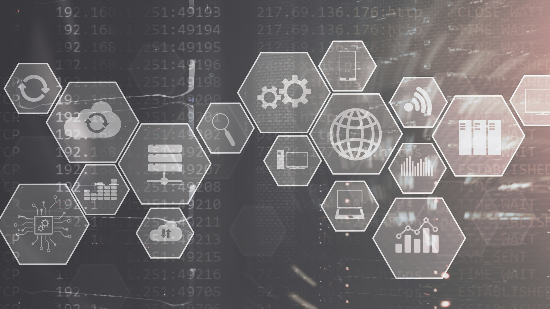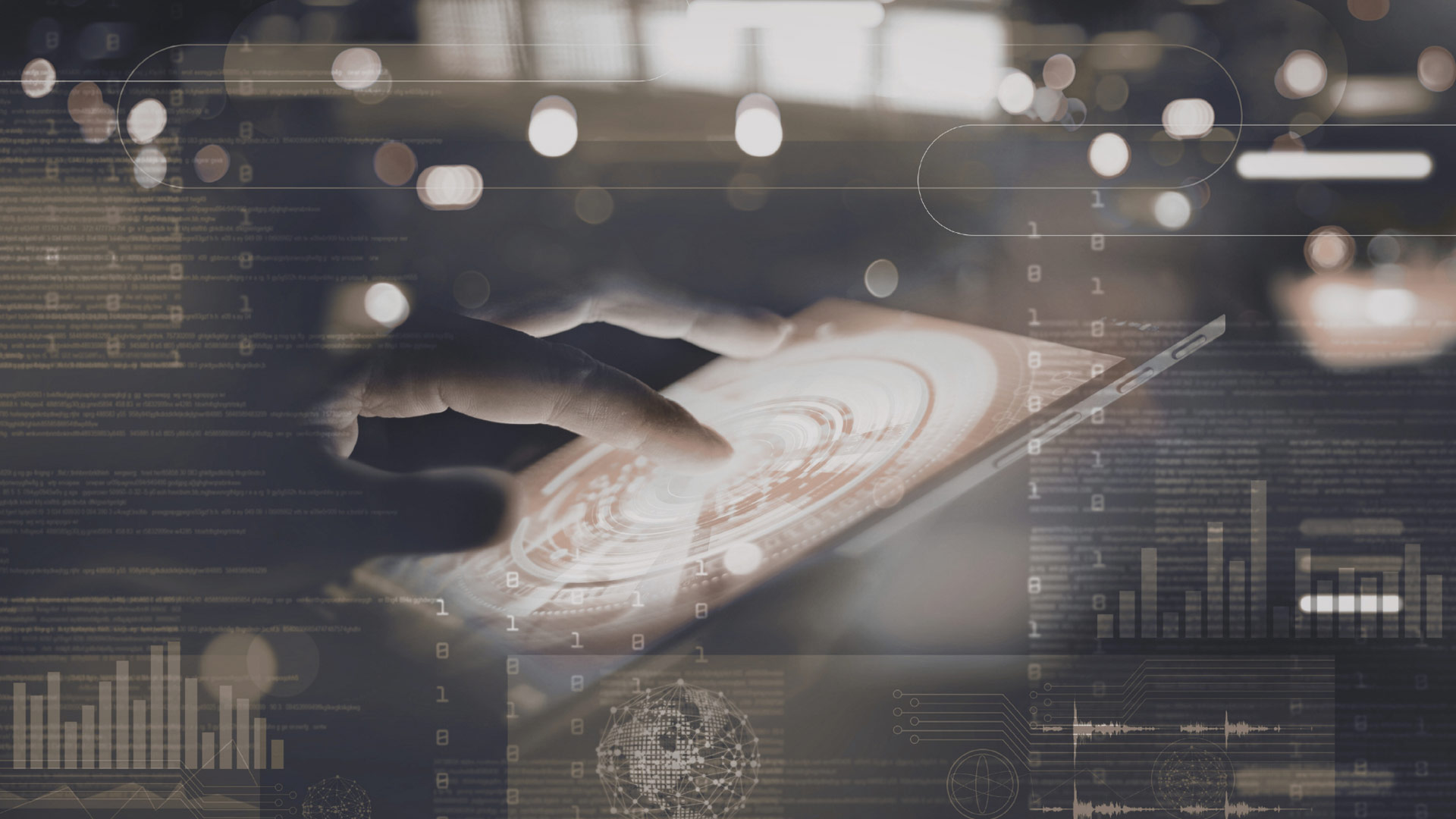 Digital code overlay on wet concrete grid surface